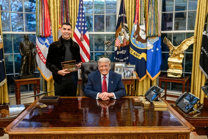 President Donald Trump meets with Cristiano Ronaldo in the Oval Office, Tuesday, November 18, 2025., Credit:Daniel Torok / Avalon