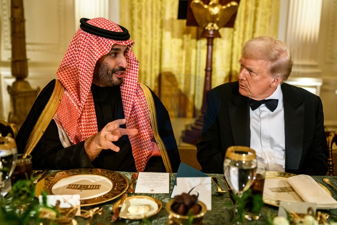 President Donald Trump hosts a dinner for Crown Prince and Prime Minister Mohammed bin Salman Al Saud of Saudi Arabia, Tuesday, November 18, 2025, in the East Room of the White House., Credit:Daniel Torok / Avalon