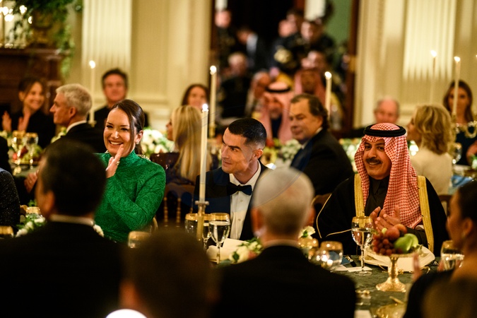 Cristiano Ronaldo listens as President Donald Trump delivers remarks at a dinner for Crown Prince and Prime Minister Mohammed bin Salman Al Saud of Saudi Arabia, Tuesday, November 18, 2025, in the East Room of the White House., Credit:Daniel Torok / Avalon