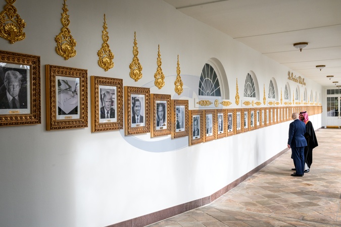 President Donald Trump and Crown Prince and Prime Minister Mohammed bin Salman Al Saud of Saudi Arabia walk along the West Colonnade of the White House to the Oval Office, Tuesday, November 18, 2025., Credit:Joyce N. Boghosian / Avalon