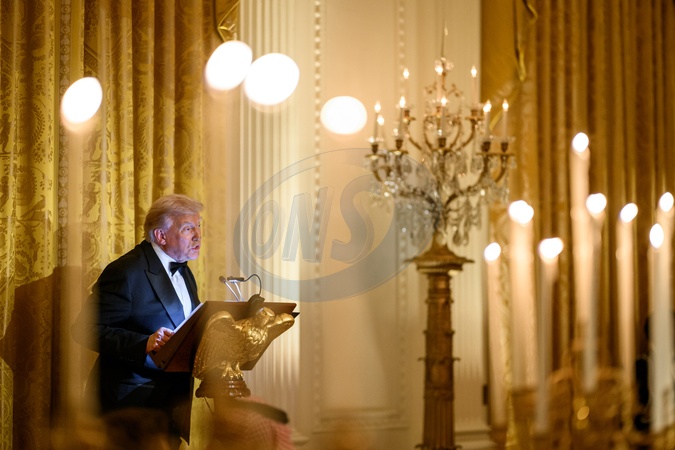 President Donald Trump delivers remarks at a dinner for Crown Prince and Prime Minister Mohammed bin Salman Al Saud of Saudi Arabia, Tuesday, November 18, 2025, in the East Room of the White House., Credit:Daniel Torok / Avalon