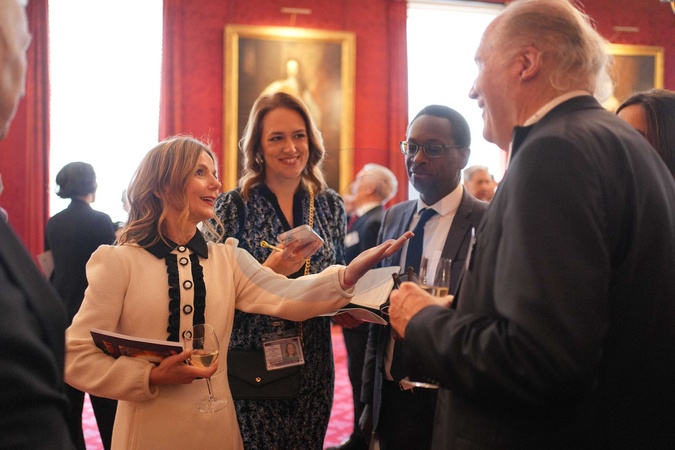 Royal Commonwealth Society Ambassador Geri Halliwell-Horner (left) speaks to guests during a reception to celebrate the winners of the Queen's Commonwealth Essay Competition at St James' Palace in London. Picture date: Thursday November 20, 2025., Credit:Yui Mok / Avalon