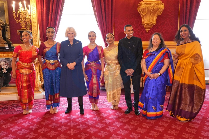 Queen Camilla with performers, during a reception to celebrate the winners of the Queen's Commonwealth Essay Competition at St James' Palace in London. Picture date: Thursday November 20, 2025., Credit:Yui Mok / Avalon