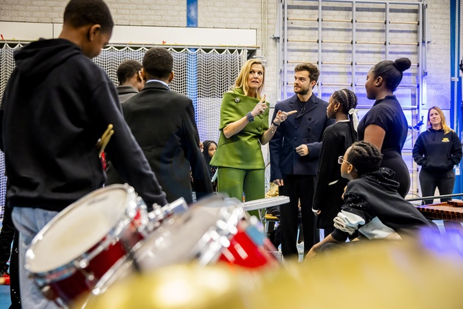 Queen Máxima visits participating school, largest school band in the Netherlands, Amsterdam, The Netherlands