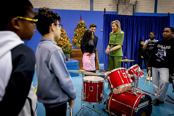 Amsterdam, The Netherlands, 2025-11-20 14:24:03AMSTERDAM, 20-11-2025, Mobiel Primary School. Queen Máxima, honorary chair of More Music in the Classroom, visited Mobiel Primary School in Amsterdam. Mobiel Primary School is one of twelve primary schools participating in the largest school band in the Netherlands. The school band performs during the annual Christmas Music Gala, which raises awareness of the importance of music and creative education. PHOTO: NLBeeld/POOL/Patrick van Katwijk, Credit:Avalon