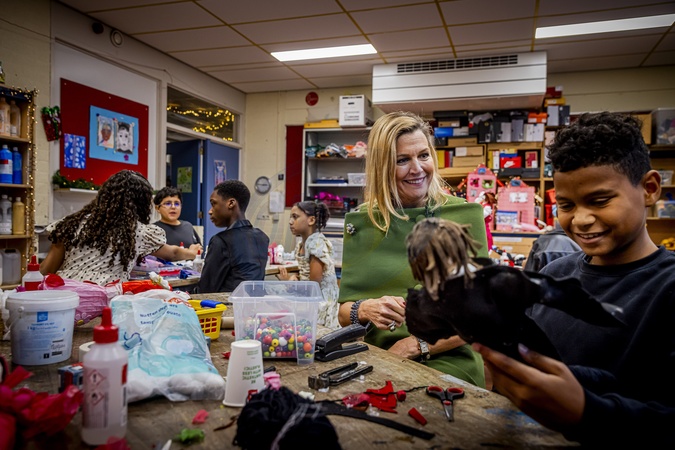 Amsterdam, The Netherlands, 2025-11-20 14:44:58AMSTERDAM, 20-11-2025, Mobiel Primary School. Queen Máxima, honorary chair of More Music in the Classroom, visited Mobiel Primary School in Amsterdam. Mobiel Primary School is one of twelve primary schools participating in the largest school band in the Netherlands. The school band performs during the annual Christmas Music Gala, which raises awareness of the importance of music and creative education. PHOTO: NLBeeld/POOL/Patrick van Katwijk, Credit:Avalon