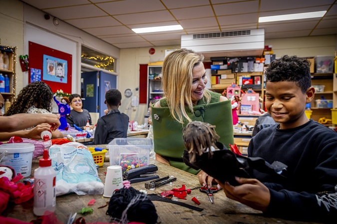 Amsterdam, The Netherlands, 2025-11-20 14:45:07AMSTERDAM, 20-11-2025, Mobiel Primary School. Queen Máxima, honorary chair of More Music in the Classroom, visited Mobiel Primary School in Amsterdam. Mobiel Primary School is one of twelve primary schools participating in the largest school band in the Netherlands. The school band performs during the annual Christmas Music Gala, which raises awareness of the importance of music and creative education. PHOTO: NLBeeld/POOL/Patrick van Katwijk, Credit:Avalon