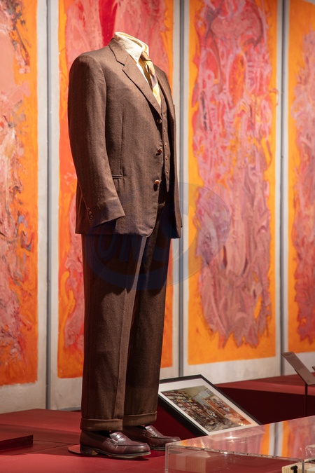 Wes Anderson unveils a retrospective exhibition of his films including The Royal Tenenbaums, Asteroid City and The Phoenician Scheme at the Design Museum in London, featuring over 700 objects including the candy-pink model of the Grand Budapest Hotel, original storyboards, costumes, stop-motion puppets, and handwritten notebooks., Credit:Luke Hayes / Avalon