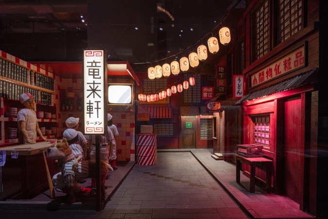 Wes Anderson unveils a retrospective exhibition of his films including The Royal Tenenbaums, Asteroid City and The Phoenician Scheme at the Design Museum in London, featuring over 700 objects including the candy-pink model of the Grand Budapest Hotel, original storyboards, costumes, stop-motion puppets, and handwritten notebooks., Credit:Luke Hayes / Avalon