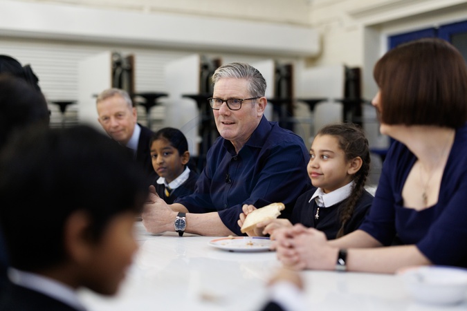 20/11/2025. Reading , United Kingdom. Prime Minister Keir Starmer and Education Secretary Bridget Philppson meets children attending Breakfast Club at the St Anne's Catholic Primary school as the government announces schools with more pupils from lower income backgrounds will be able to apply to open breakfast clubs., Credit:Simon Dawson / Avalon