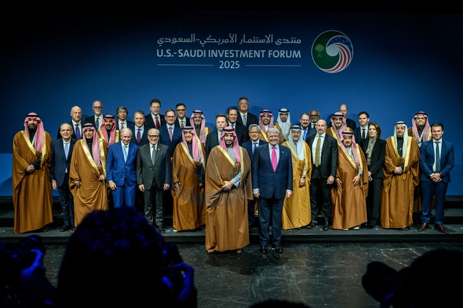 President Donald Trump participates in a photo opportunity alongside Crown Prince and Prime Minister Mohammed bin Salman Al Saud of Saudi Arabia and business leaders at the U.S.-Saudi Investment Forum, Wednesday, November 19, 2025, at the John F. Kennedy Center for the Performing Arts in Washington, D.C., Credit:Daniel Torok / Avalon