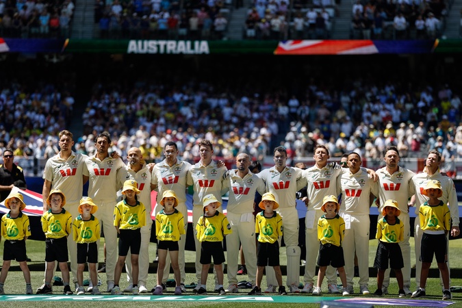 Australia team lineup during the NRMA Insurance Ashes First Test Day 1 Series Australia vs England at Optus Stadium, Perth, Australia, 20th November 2025, Credit:Santanu Banik/News Images / Avalon