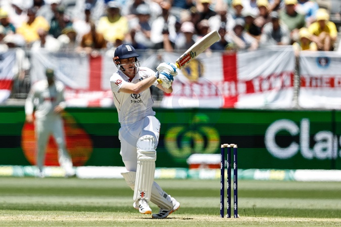 Harry Brook of England plays a shot during the NRMA Insurance Ashes First Test Day 1 Series Australia vs England at Optus Stadium, Perth, Australia, 20th November 2025, Credit:Santanu Banik/News Images / Avalon