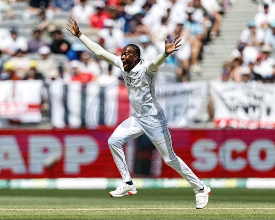 Jofra Archer of England celebrates the wicket of Jake Weatherald of Australia during the NRMA Insurance Ashes First Test Day 1 Series Australia vs England at Optus Stadium, Perth, Australia, 20th November 2025, Credit:Santanu Banik/News Images / Avalon
