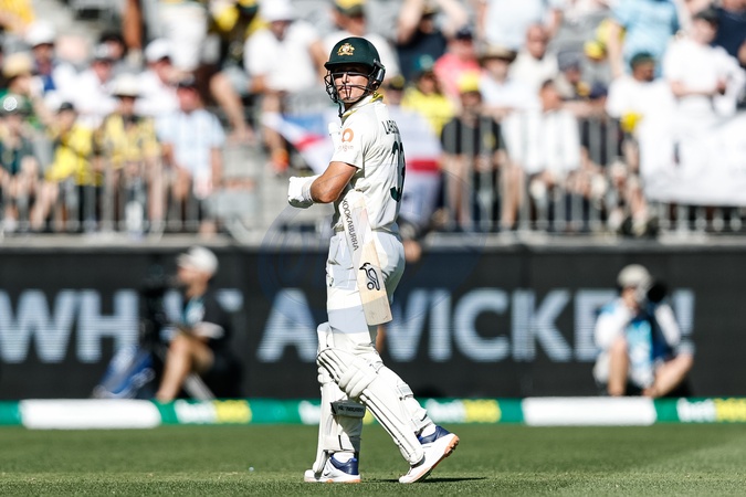 Marnus Labuschagne of Australia leaves the field of play after been dismissed during the NRMA Insurance Ashes First Test Day 1 Series Australia vs England at Optus Stadium, Perth, Australia, 20th November 2025, Credit:Santanu Banik/News Images / Avalon