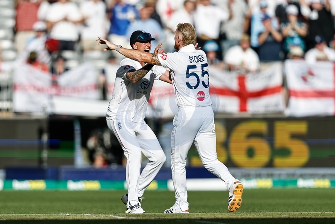 England captain Ben Stokes celebrates the wicket of Travis Head of Australia during the NRMA Insurance Ashes First Test Day 1 Series Australia vs England at Optus Stadium, Perth, Australia, 20th November 2025, Credit:Santanu Banik/News Images / Avalon