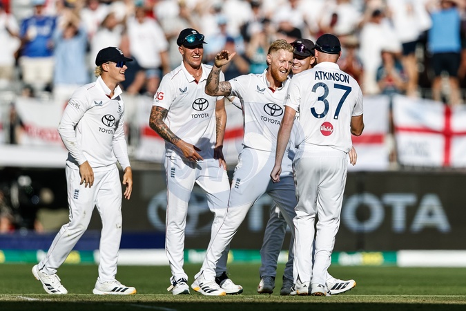 England captain Ben Stokes celebrates the wicket of Travis Head of Australia during the NRMA Insurance Ashes First Test Day 1 Series Australia vs England at Optus Stadium, Perth, Australia, 20th November 2025, Credit:Santanu Banik/News Images / Avalon