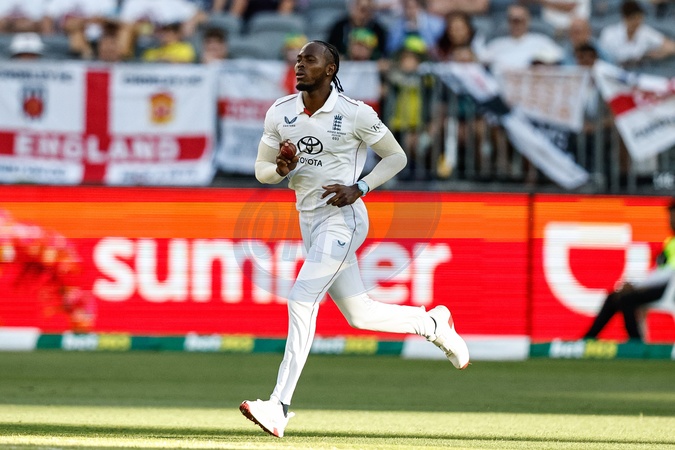 Jofra Archer of England delivers the ball during the NRMA Insurance Ashes First Test Day 1 Series Australia vs England at Optus Stadium, Perth, Australia, 20th November 2025, Credit:Santanu Banik/News Images / Avalon