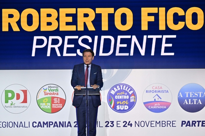 November 20, 2025: The center-left's election campaign ends to support Campania regional candidate Roberto Fico. Pictured: Giuseppe Conte, Credit:/AGF / Avalon