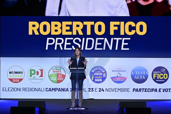 November 20, 2025: The center-left's election campaign to support Campania regional candidate Roberto Fico concludes. Pictured: Maria Elena Boschi, Credit:/AGF / Avalon
