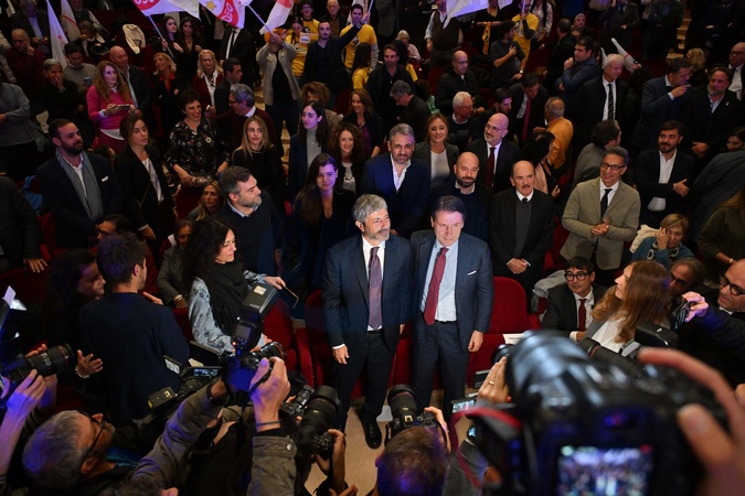 November 20, 2025: The center-left's election campaign ends to support Campania regional candidate Roberto Fico. Pictured: Roberto Fico and Giuseppe Conte, Credit:/AGF / Avalon