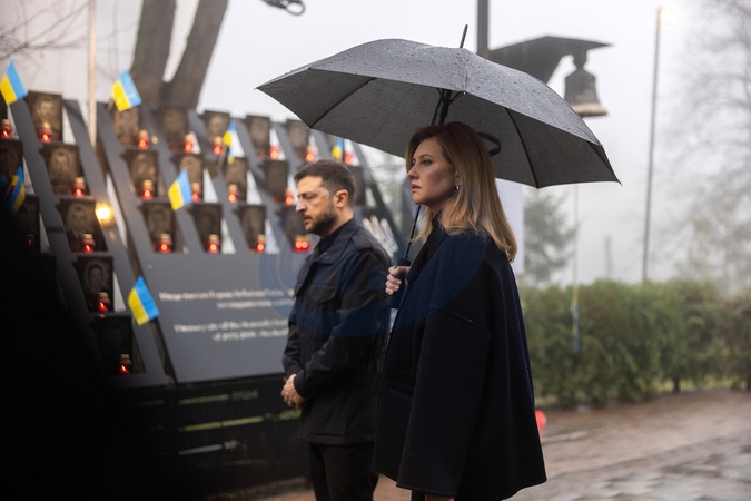 On the Day of Dignity and Freedom, President of Ukraine Volodymyr Zelenskyy and First Lady Olena Zelenska honored the memory of the Ukrainians who were killed during the Revolution of Dignity. They placed memorial candles at the cross on the Alley of the Heroes of the Heavenly Hundred. Kyiv, Ukraine, 21 November 2025., Credit:Office of the President of Ukraine / Avalon