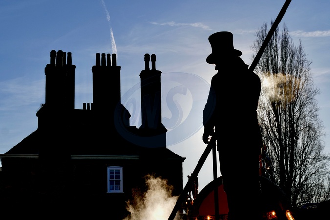 The Winchester Christmas market opened today. A mulled wine stirrer wearing a top hat stood high up on a platform to prepare the mulled wine to sell to visitors to the popular event in the grounds of Winchester Cathedral., Credit:Geoffrey Swaine / Avalon