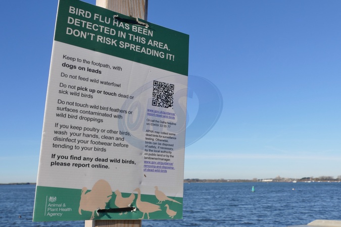 Signs that bird flu has been detected in the area have been put up at Mudeford Sandbanks., Credit:Geoffrey Swaine / Avalon
