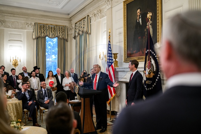 President Donald Trump delivers remarks during a meeting with recently freed Israeli hostages in the State Dining Room of the White House, Thursday, November 20, 2025., Credit:Molly Riley / Avalon