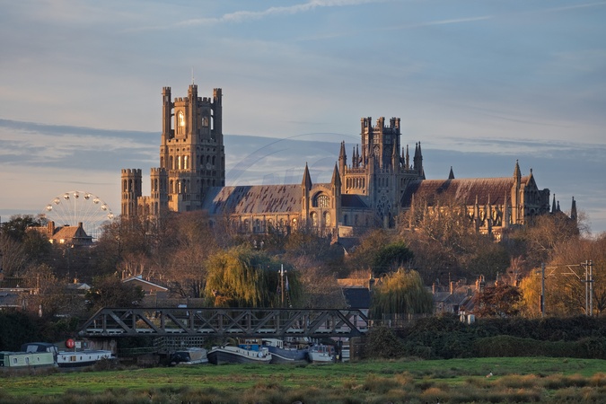 Ely Cathedral at sunset, with a large viewing wheel erected for the pre-Christmas period.Ely, Cambridgeshire. United Kingdom. 21 November 2025, Credit:Mark Fairhurst / Avalon