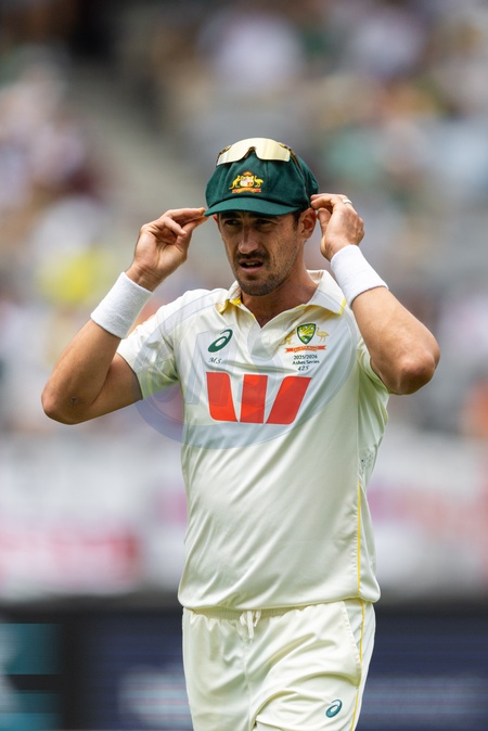 Mitch Starc of Australia in action during the NRMA Insurance Ashes First Test Day 2 Australia vs England at Optus Stadium, Perth, Australia, 22nd November 2025, Credit:Santanu Banik/News Images / Avalon