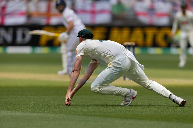 Beau Webster of Australia drops a catch during the NRMA Insurance Ashes First Test Day 2 Australia vs England at Optus Stadium, Perth, Australia, 22nd November 2025, Credit:Santanu Banik/News Images / Avalon