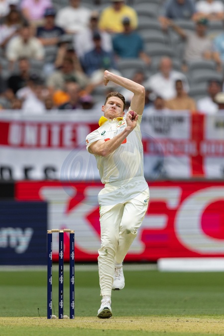 Brendan Doggett of Australia runs in to bowl during the NRMA Insurance Ashes First Test Day 2 Australia vs England at Optus Stadium, Perth, Australia, 22nd November 2025, Credit:Santanu Banik/News Images / Avalon