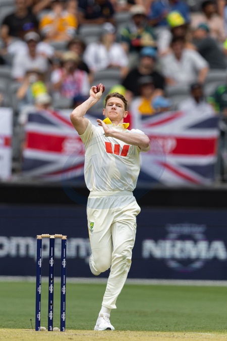 Brendan Doggett of Australia bowls during the NRMA Insurance Ashes First Test Day 2 Australia vs England at Optus Stadium, Perth, Australia, 22nd November 2025, Credit:Santanu Banik/News Images / Avalon