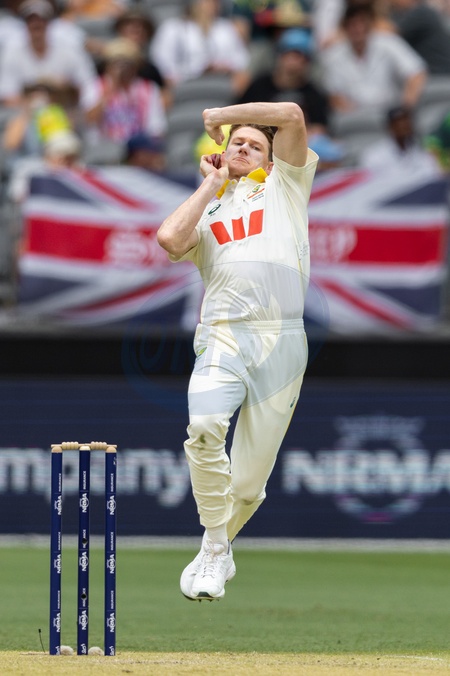 Brendan Doggett of Australia bowls during the NRMA Insurance Ashes First Test Day 2 Australia vs England at Optus Stadium, Perth, Australia, 22nd November 2025, Credit:Santanu Banik/News Images / Avalon