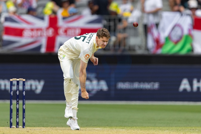 Brendan Doggett of Australia bowls during the NRMA Insurance Ashes First Test Day 2 Australia vs England at Optus Stadium, Perth, Australia, 22nd November 2025, Credit:Santanu Banik/News Images / Avalon