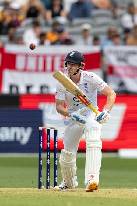Harry Brook (vc) of England plays a defensive shot during the NRMA Insurance Ashes First Test Day 2 Australia vs England at Optus Stadium, Perth, Australia, 22nd November 2025, Credit:Santanu Banik/News Images / Avalon