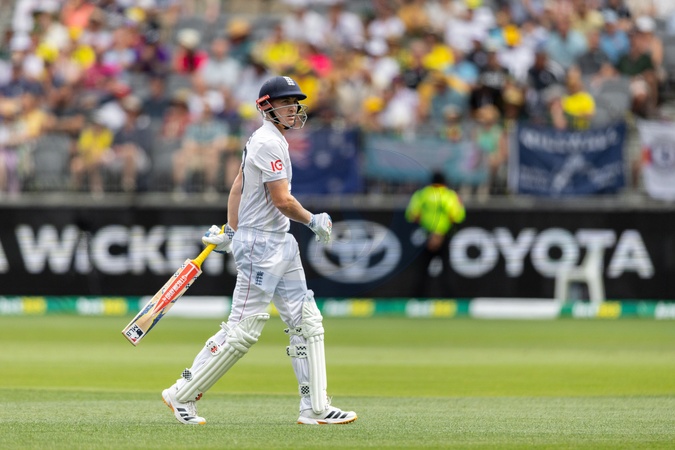 Harry Brook (vc) of England walks off after getting out during the NRMA Insurance Ashes First Test Day 2 Australia vs England at Optus Stadium, Perth, Australia, 22nd November 2025, Credit:Santanu Banik/News Images / Avalon