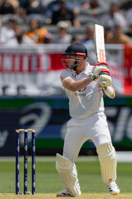 Gus Atkinson of England plays a cut shot during the NRMA Insurance Ashes First Test Day 2 Australia vs England at Optus Stadium, Perth, Australia, 22nd November 2025, Credit:Santanu Banik/News Images / Avalon