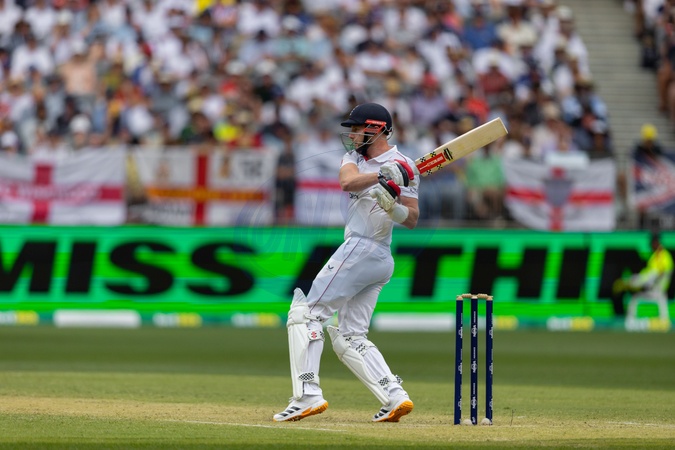 Gus Atkinson of England plays a pull shot during the NRMA Insurance Ashes First Test Day 2 Australia vs England at Optus Stadium, Perth, Australia, 22nd November 2025, Credit:Santanu Banik/News Images / Avalon