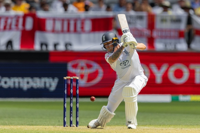 Brydon Carse of England in action during the NRMA Insurance Ashes First Test Day 2 Australia vs England at Optus Stadium, Perth, Australia, 22nd November 2025, Credit:Santanu Banik/News Images / Avalon