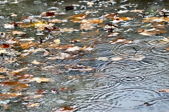 Puddles filled with fallen autumn leaves form along the country lanes during the heavy rain showers., Credit:Geoffrey Swaine / Avalon