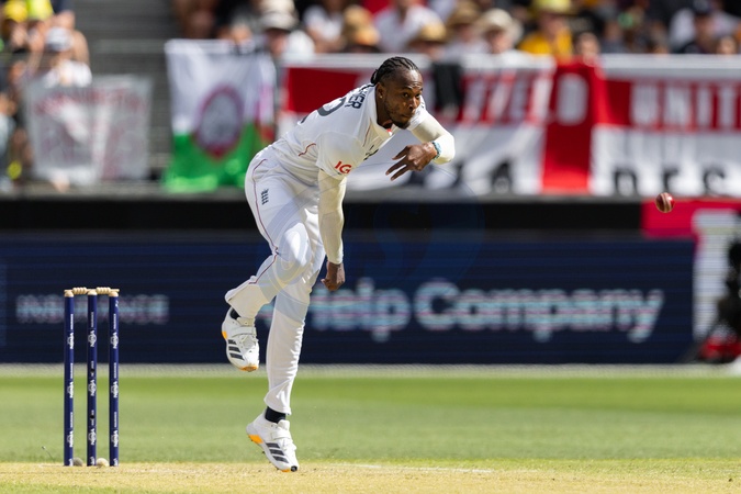 Jofra Archer of England bowls during the NRMA Insurance Ashes First Test Day 2 Australia vs England at Optus Stadium, Perth, Australia, 22nd November 2025, Credit:Santanu Banik/News Images / Avalon