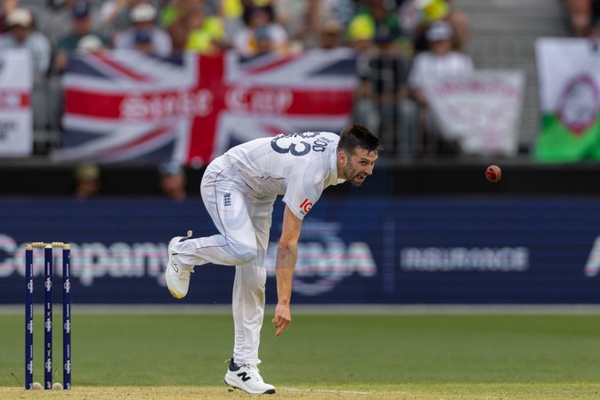 Mark Wood of England bowls during the NRMA Insurance Ashes First Test Day 2 Australia vs England at Optus Stadium, Perth, Australia, 22nd November 2025, Credit:Santanu Banik/News Images / Avalon