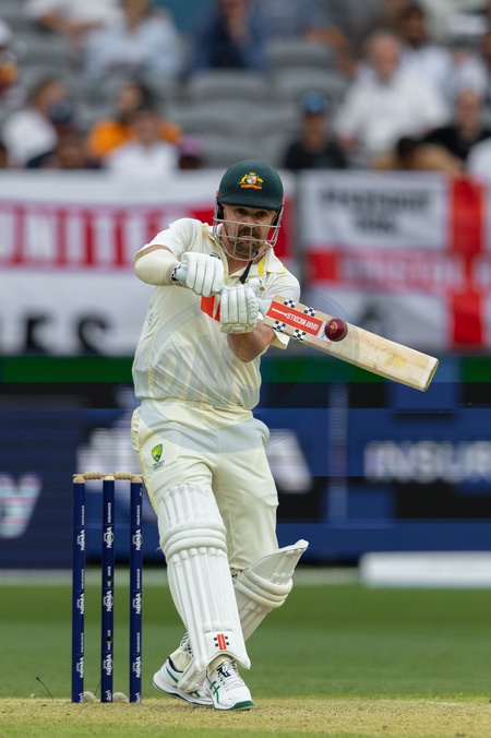 Travis Head of Australia plays a pull shot during the NRMA Insurance Ashes First Test Day 2 Australia vs England at Optus Stadium, Perth, Australia, 22nd November 2025, Credit:Santanu Banik/News Images / Avalon