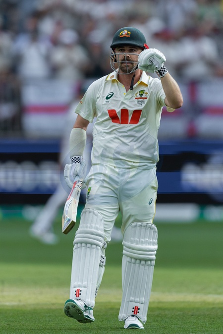 Travis Head of Australia celebrates after scoring a century during the NRMA Insurance Ashes First Test Day 2 Australia vs England at Optus Stadium, Perth, Australia, 22nd November 2025, Credit:Santanu Banik/News Images / Avalon