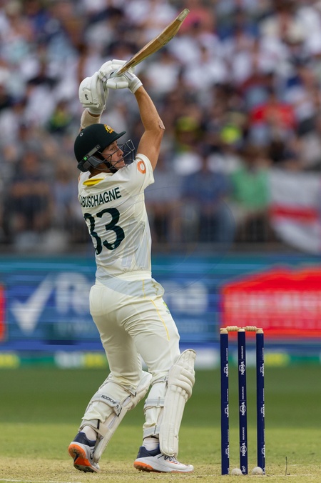 Marnus Labuschagne of Australia plays a lofted shot during the NRMA Insurance Ashes First Test Day 2 Australia vs England at Optus Stadium, Perth, Australia, 22nd November 2025, Credit:Santanu Banik/News Images / Avalon