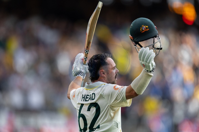 Travis Head of Australia cheers the crowd during the NRMA Insurance Ashes First Test Day 2 Australia vs England at Optus Stadium, Perth, Australia, 22nd November 2025, Credit:Santanu Banik/News Images / Avalon