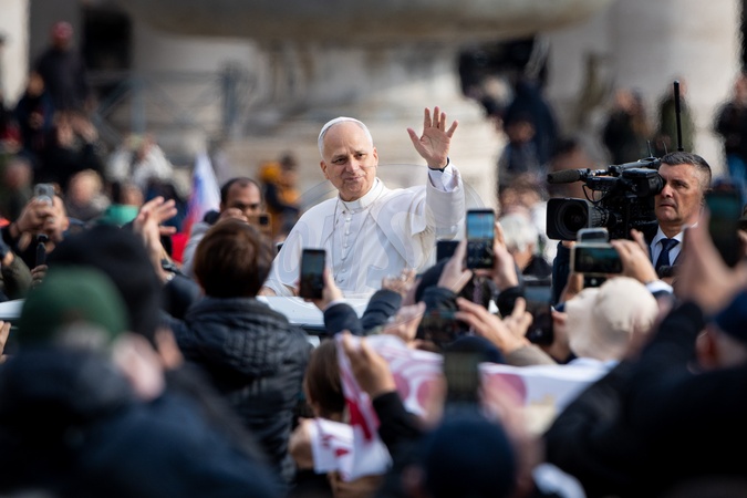 Pope Leo XIV leads a Jubilee Audience on the occasion of the Jubilee of Choirs and Choral Societies in St. Peter's Square in Vatican City, Vatican, on 22 November 2025.