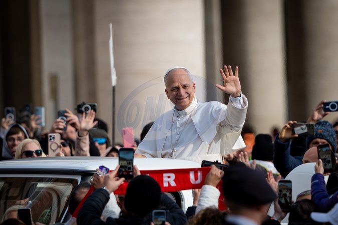 Pope Leo XIV leads a Jubilee Audience on the occasion of the Jubilee of Choirs and Choral Societies in St. Peter's Square in Vatican City, Vatican, on 22 November 2025.